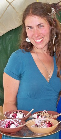 All in all we served up Sundaes to about 500 of our playa family and friends. Guests were treated to an array of six Bliss flavors and choice of toppings, including: Holy Kakow's amazing Chocolate Sauce, Lost Valley's freshly picked Wild Blackberry Sauce, Hemp Seeds, Roasted Hazelnuts, Dried Northwest Cherries, Vegan Chocolate Chips, and more. We never heard one single complaint about the wait, only endless thanks and so many hugs and kisses. We were feeling so much love, and it was so gratifying to finally see this event come to fruition. Chris G, or Mr. Bliss (as he is more affectionately known) and I had been planning this event for months.