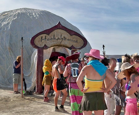The event was a little slow to kick off since the Hookahdome was still busy trying to get set up for our event on Tuesday afternoon. Camp mates all pitched in to help situate tables and pillows, pin up parachutes, and roll out carpets so we could start dishing up the Bliss to the line of burners that was gathering up outside.